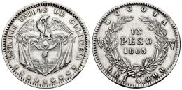 Colombia. 1 peso. 1863. Bogotá. (Km-139.1). (Restrepo-315.2). Ag. 25,00 g. Cleaned. Choice VF. Est...200,00.