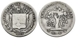 Costa Rica. 25 centavos. 1865. GW. (Km-106). Ag. 6,07 g. Scarce. Choice F/Almost VF. Est...75,00.