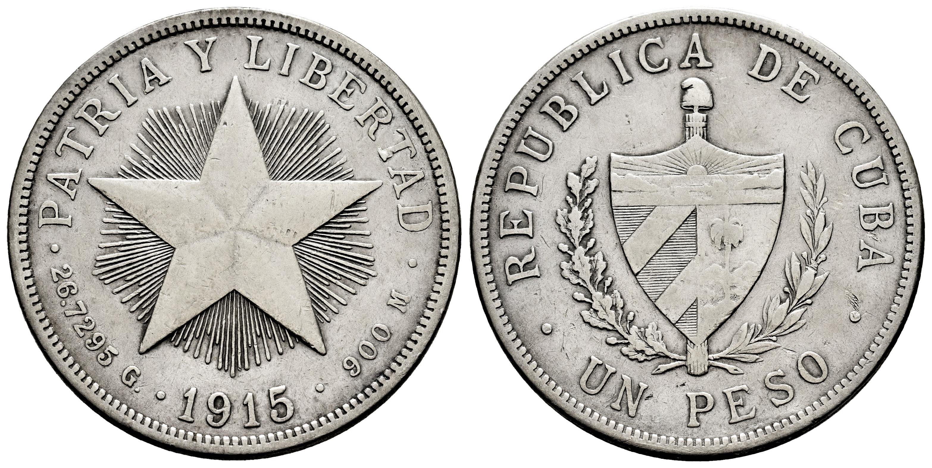 Cuba. 1 peso. 1915. Philadelphia. (Km-15.2). Ag. 26,35 g. Cleaned. VF. Est...40,00.