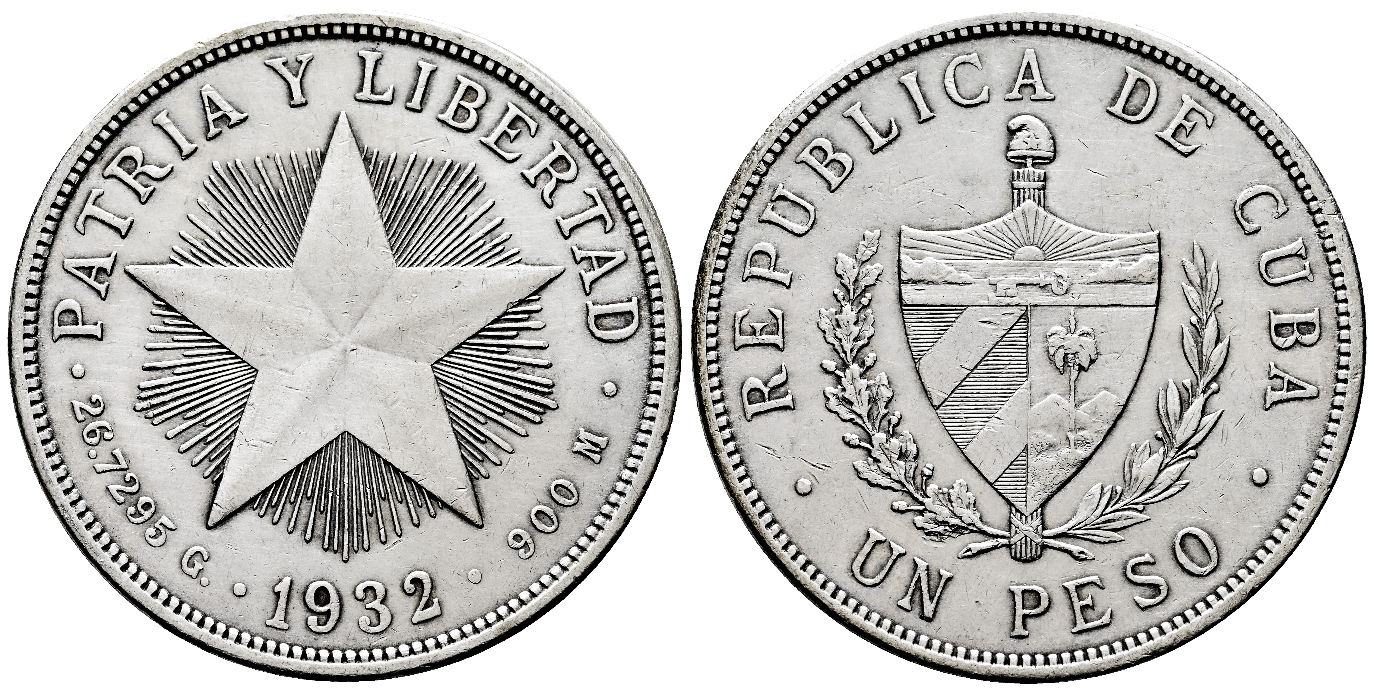 Cuba. 1 peso. 1932. (Km-15.2). Ag. 26,67 g. Cleaned. Choice VF. Est...45,00.