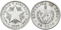 Cuba. 1 peso. 1934. (Km-15.2). Ag. 26,75 g. Minor scratches. Traces of luster. XF. Est...45,00.