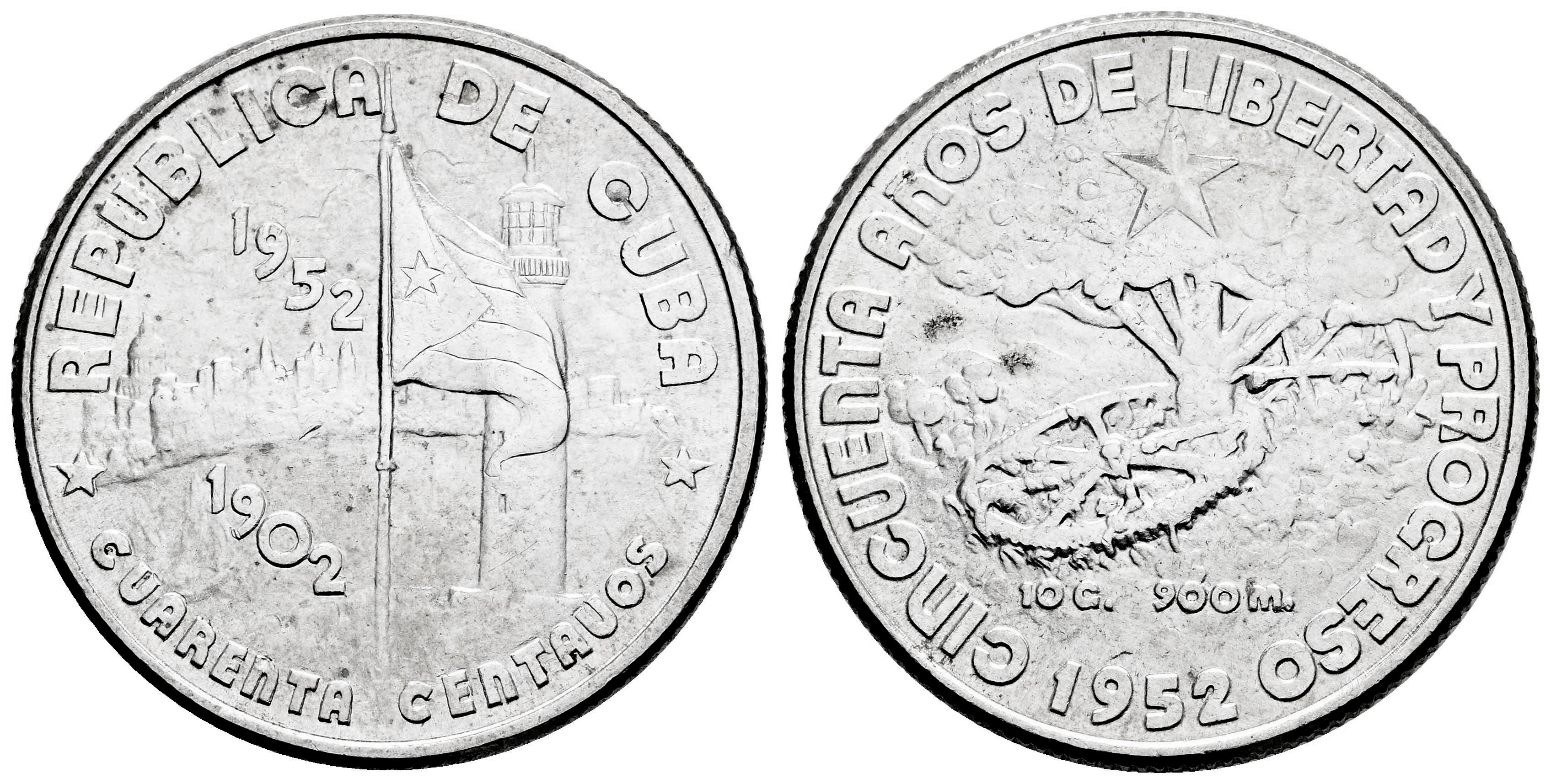 Cuba. 40 centavos. 1952. Philadelphia. (Km-25). Ag. 9,98 g. Original luster. Struck to commemorate the 50th anniversary of the Republic. AU. Est...40,00.