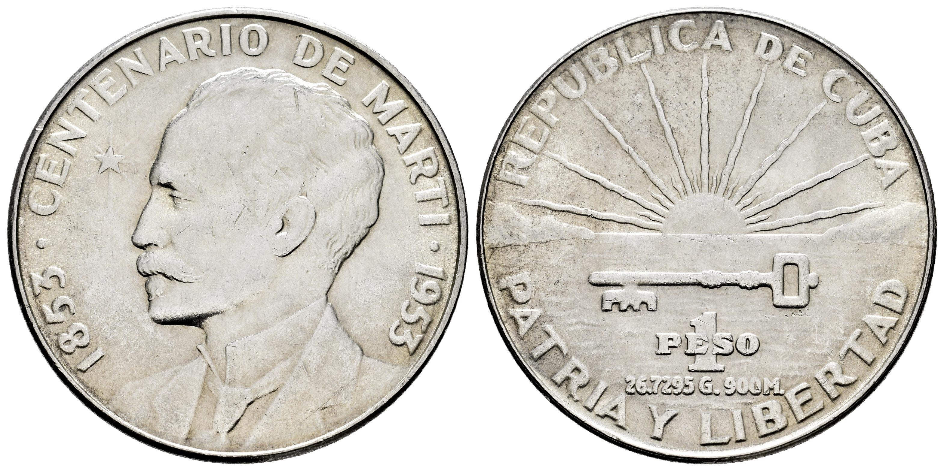 Cuba. 1 peso. 1953. (Km-29). Ag. 26,82 g. Centenary of the Birth of José Martí. Original luster. Almost MS. Est...45,00.