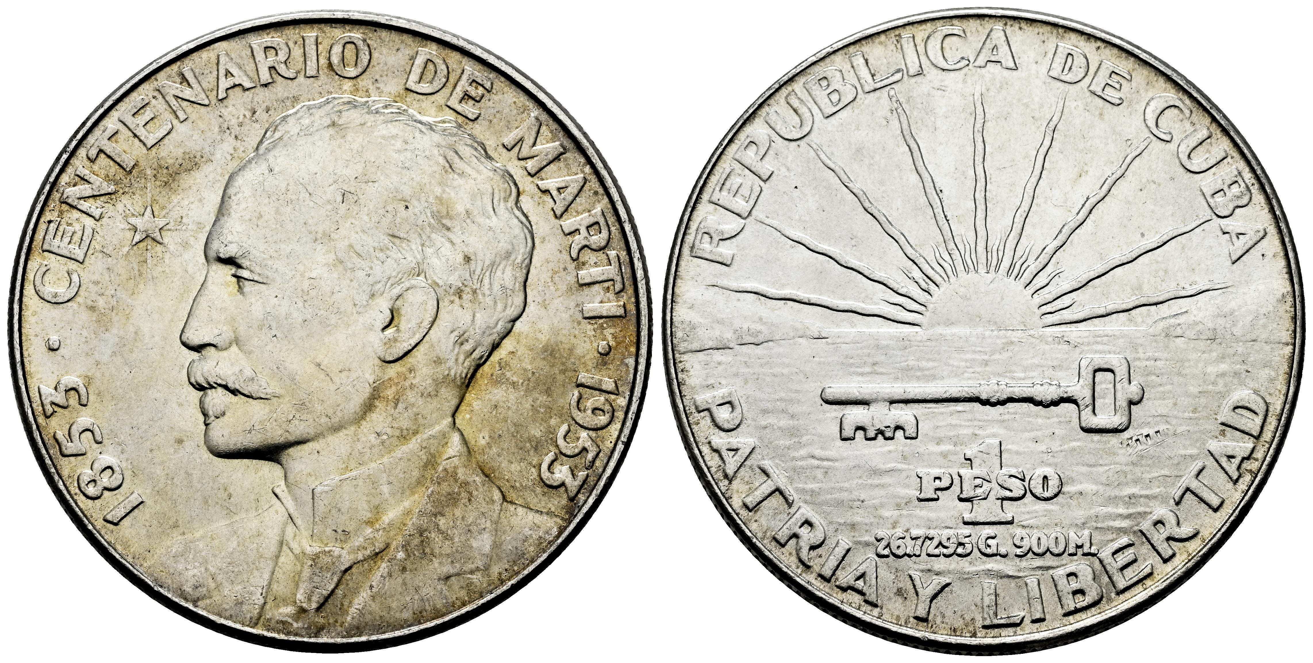 Cuba. 1 peso. 1953. (Km-29). Ag. 26,82 g. Centenary of the Birth of José Martí. Original luster. AU. Est...45,00.