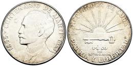 Cuba. 1 peso. 1953. (Km-29). Ag. 26,80 g. Centenary of the Birth of José Martí. Minor marks on obverse. Original luster. XF. Est...45,00.