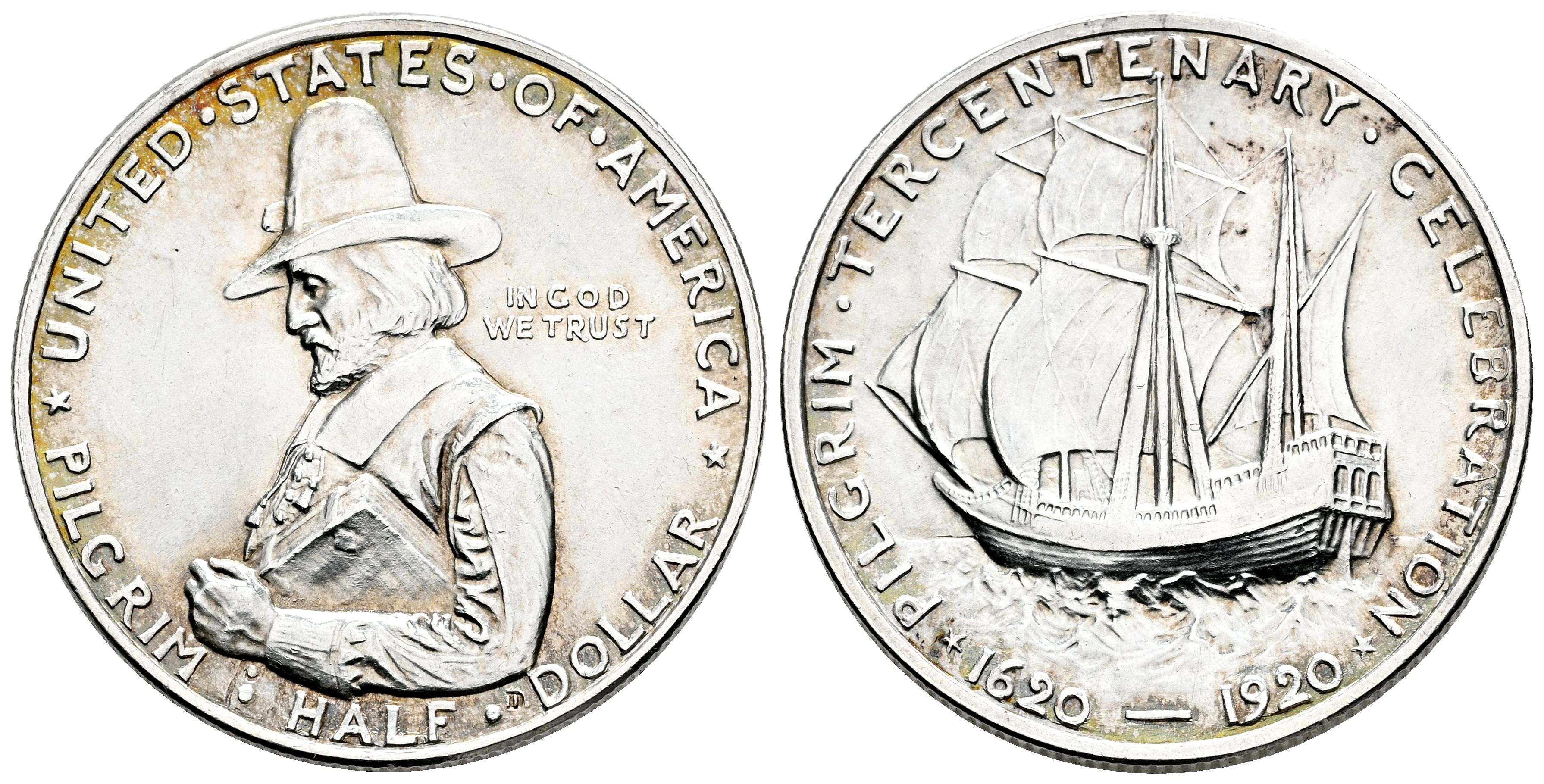 U.S. Coins. Half Dollars. Half dollar. 1921. Philadelphia. (Km-147.2). Ag. 12,53 g. Commemorating the 300th Anniversary of the Landing of Pilgrims at Plymouth, Massachusetts. Original luster. Scarce. Almost MS. Est...150,00.