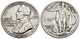 U.S. Coins. Half Dollars. Half dollar. 1928. (Km-163). Ag. 12,44 g. Hawaiian Sesquicentennial. Hairlines. Cleaned. Rare. XF. Est...1200,00.