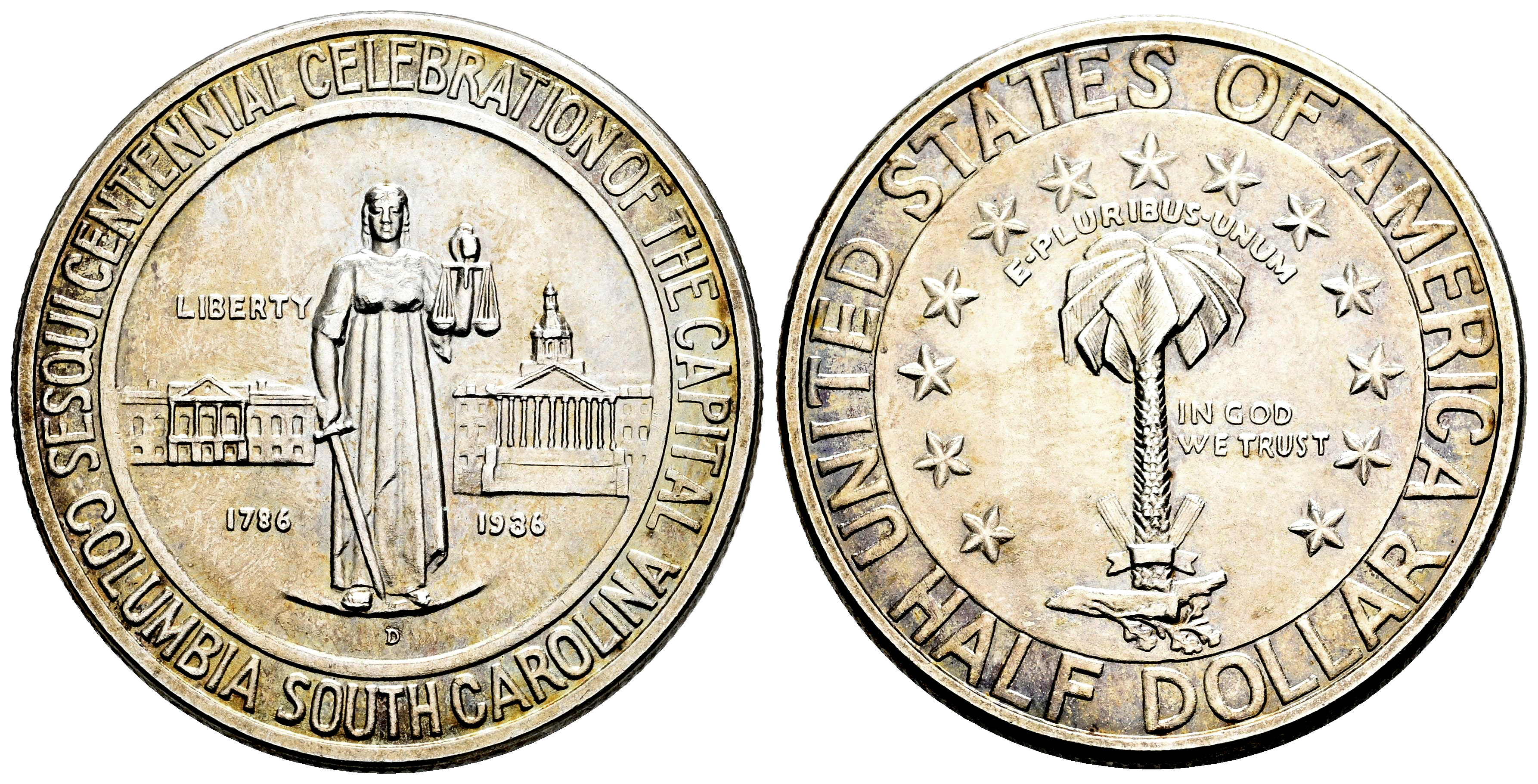 U.S. Coins. Half Dollars. Half dollar. 1936. Denver. D. (Cal-178). Ag. 12,60 g. Columbia sesquicentennial. Original luster. Mint state. Est...200,00.