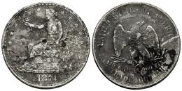 U.S. Coins. Trade Dollars. Trade dollar. 1874. Carson City. CC. (Km-108). Ag. 25,12 g. Knocks. Rust. Scarce. Choice F. Est...75,00.
