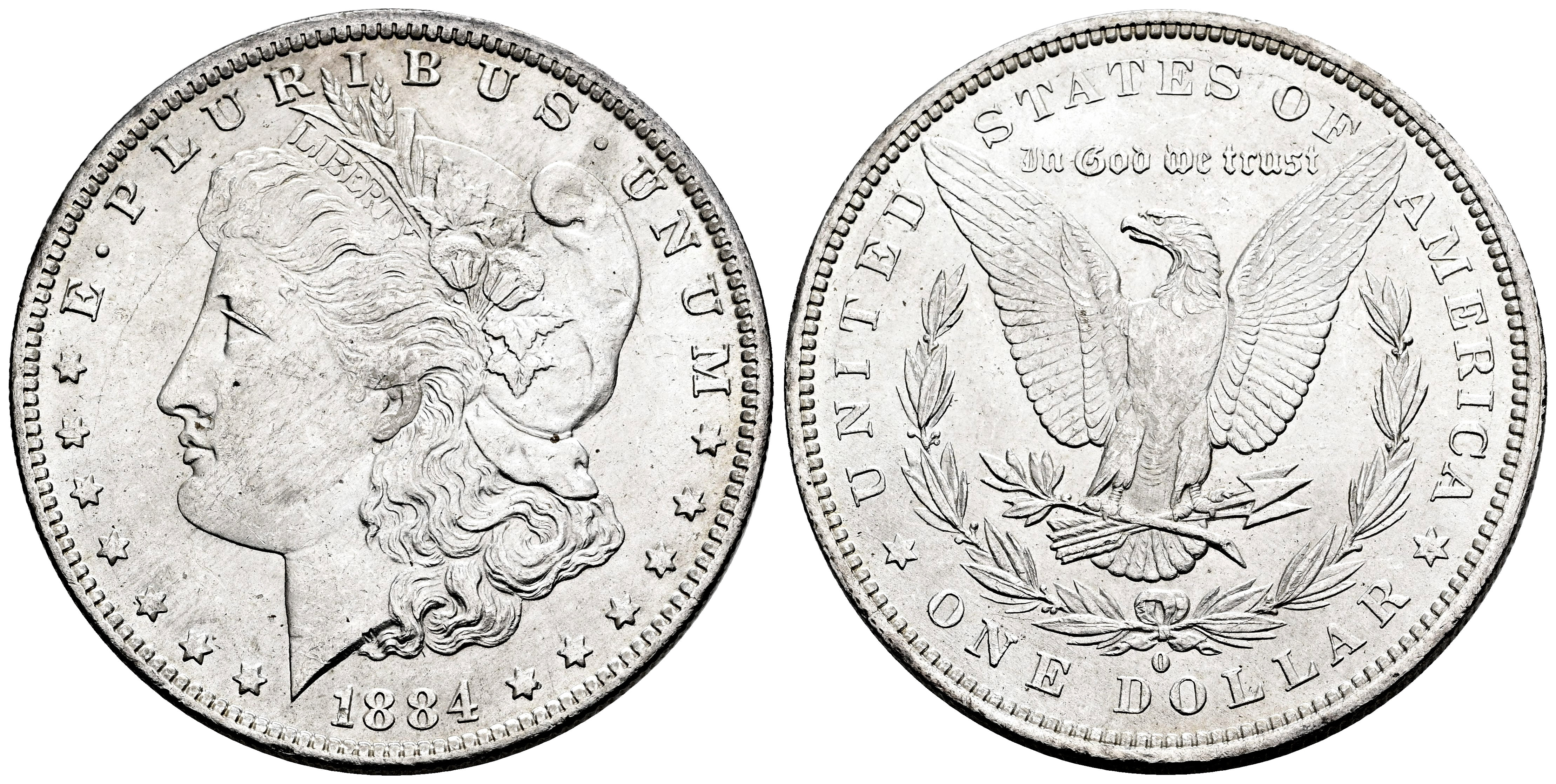 U.S. Coins. Morgan Dollars. 1 dollar. 1884. New Orleans. O. (Km-110). Ag. 26,79 g. Original luster. Minor scratches. AU. Est...80,00.