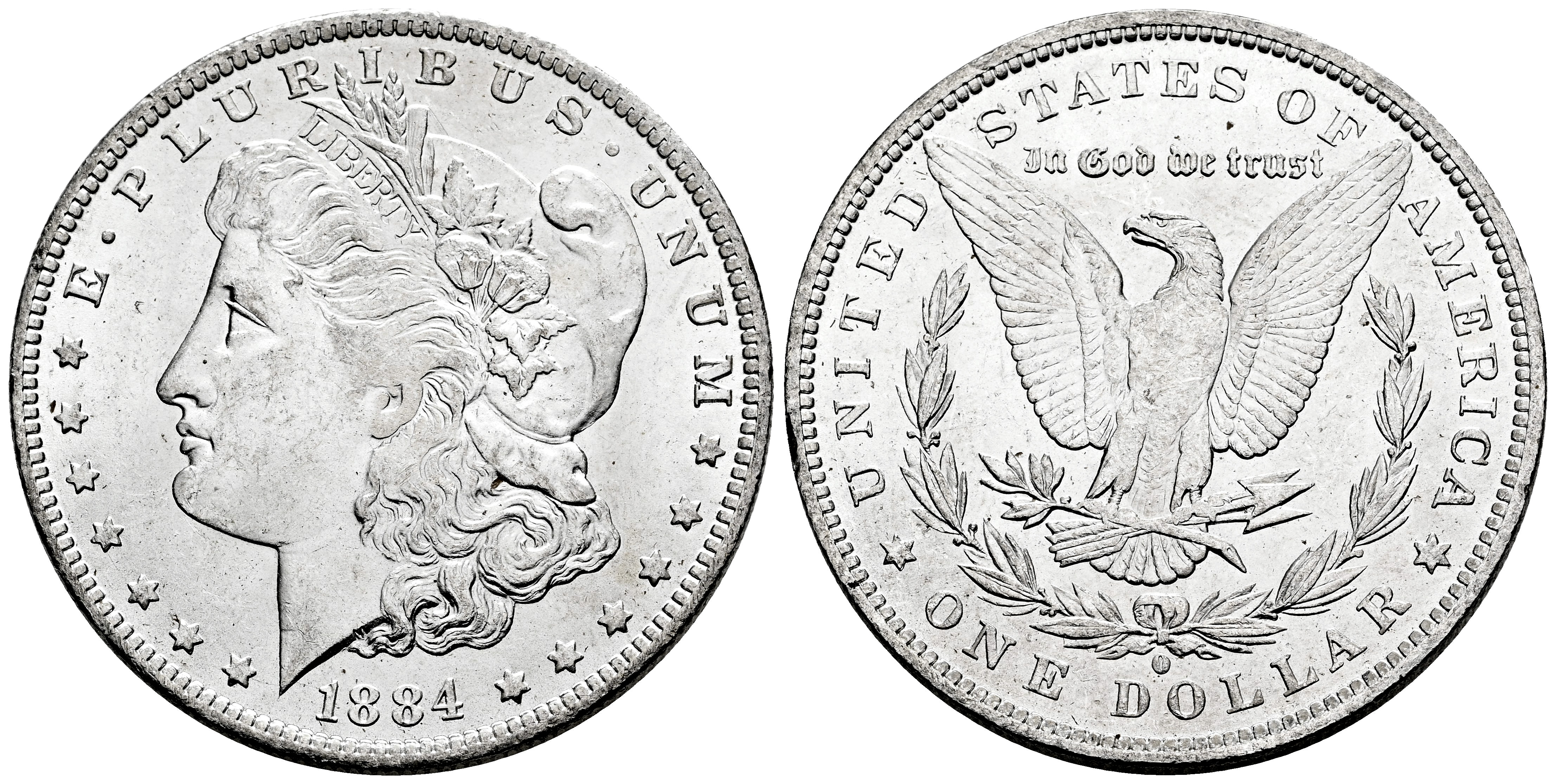 U.S. Coins. Morgan Dollars. 1 dollar. 1884. New Orleans. O. (Km-110). Ag. 26,80 g. Minor nicks on edge. Minor scratches. Original luster. XF. Est...50,00.