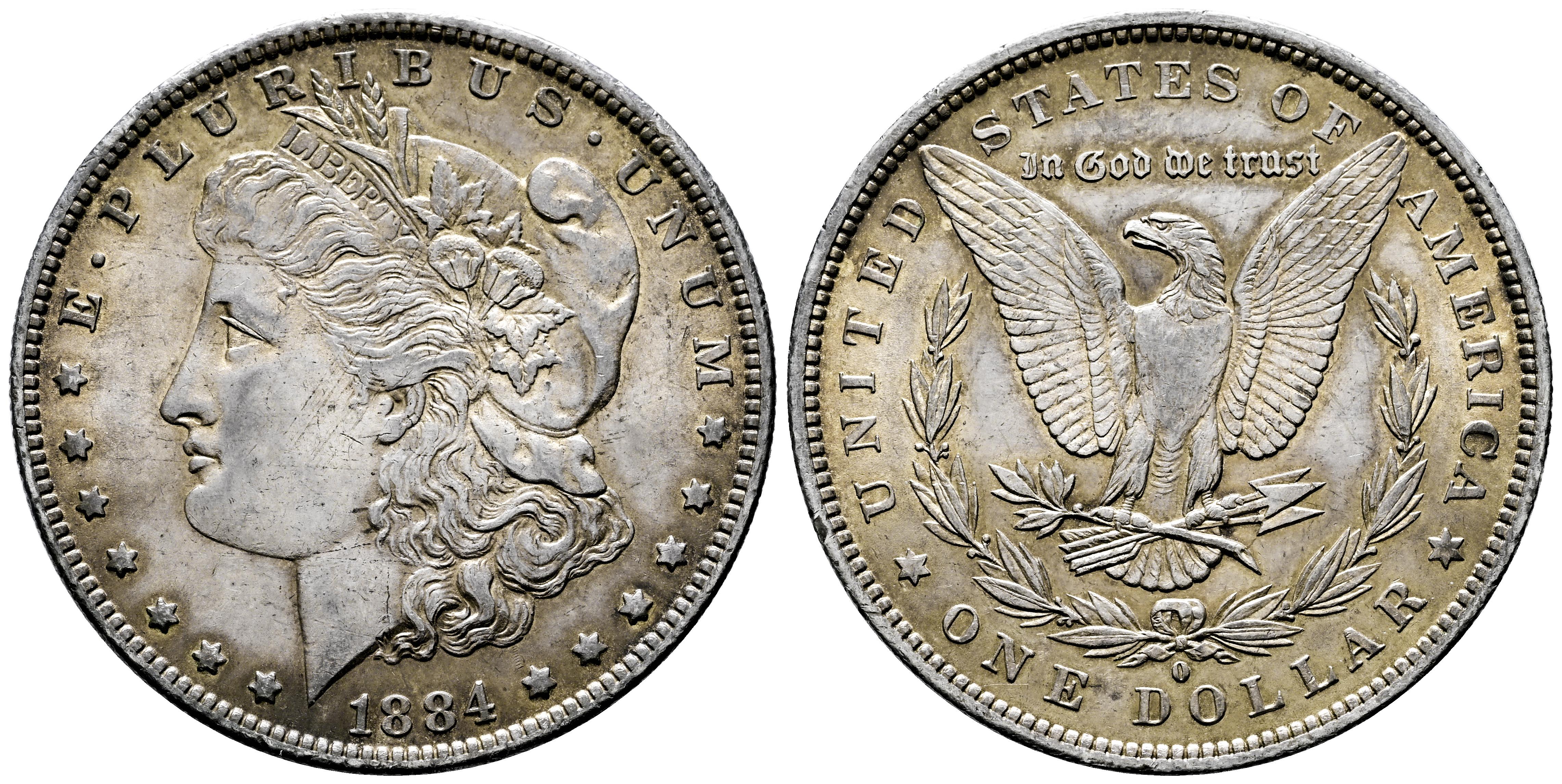 U.S. Coins. Morgan Dollars. 1 dollar. 1884. New Orleans. O. (Km-110). Ag. 26,74 g. Minor nicks on edge. Lightly toned. XF. Est...45,00.