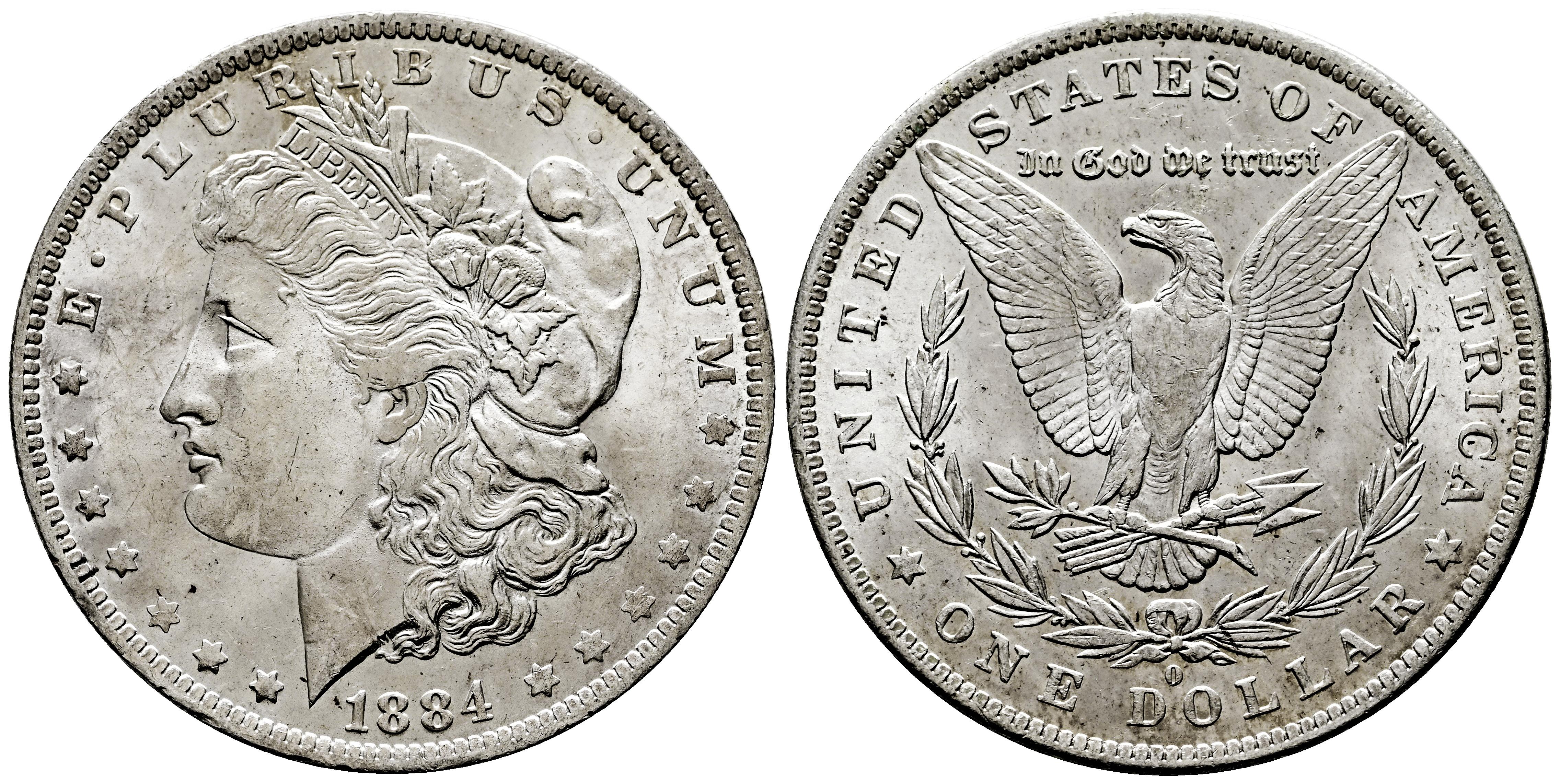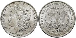 U.S. Coins. Morgan Dollars. 1 dollar. 1884. New Orleans. O. (Km-110). Ag. 26,77 g. Faint scratches. Traces of luster. XF. Est...45,00.