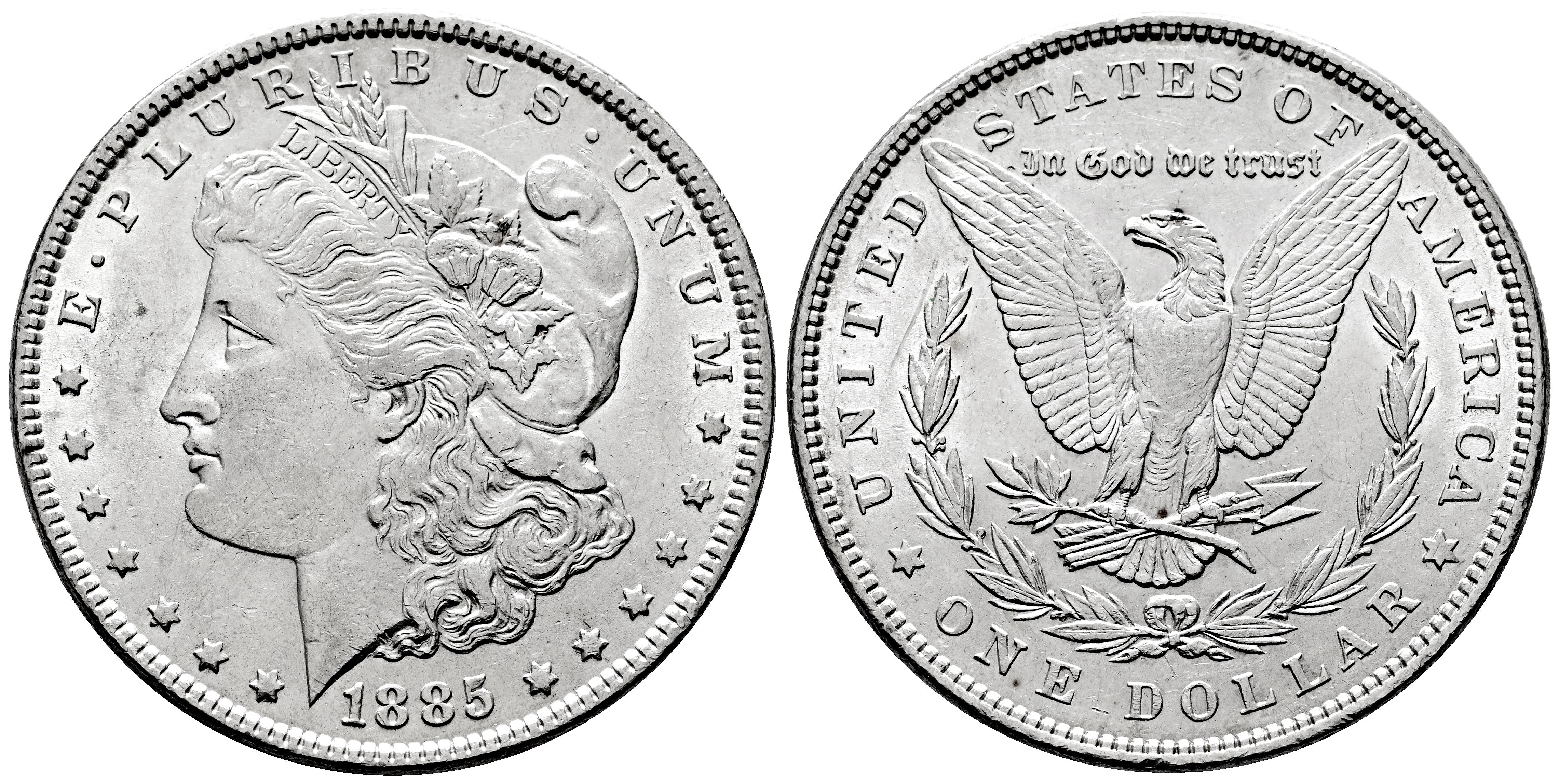 U.S. Coins. Morgan Dollars. 1 dollar. 1885. Philadelphia. (Km-110). Ag. 26,78 g. Minor marks. Almost XF. Est...45,00.