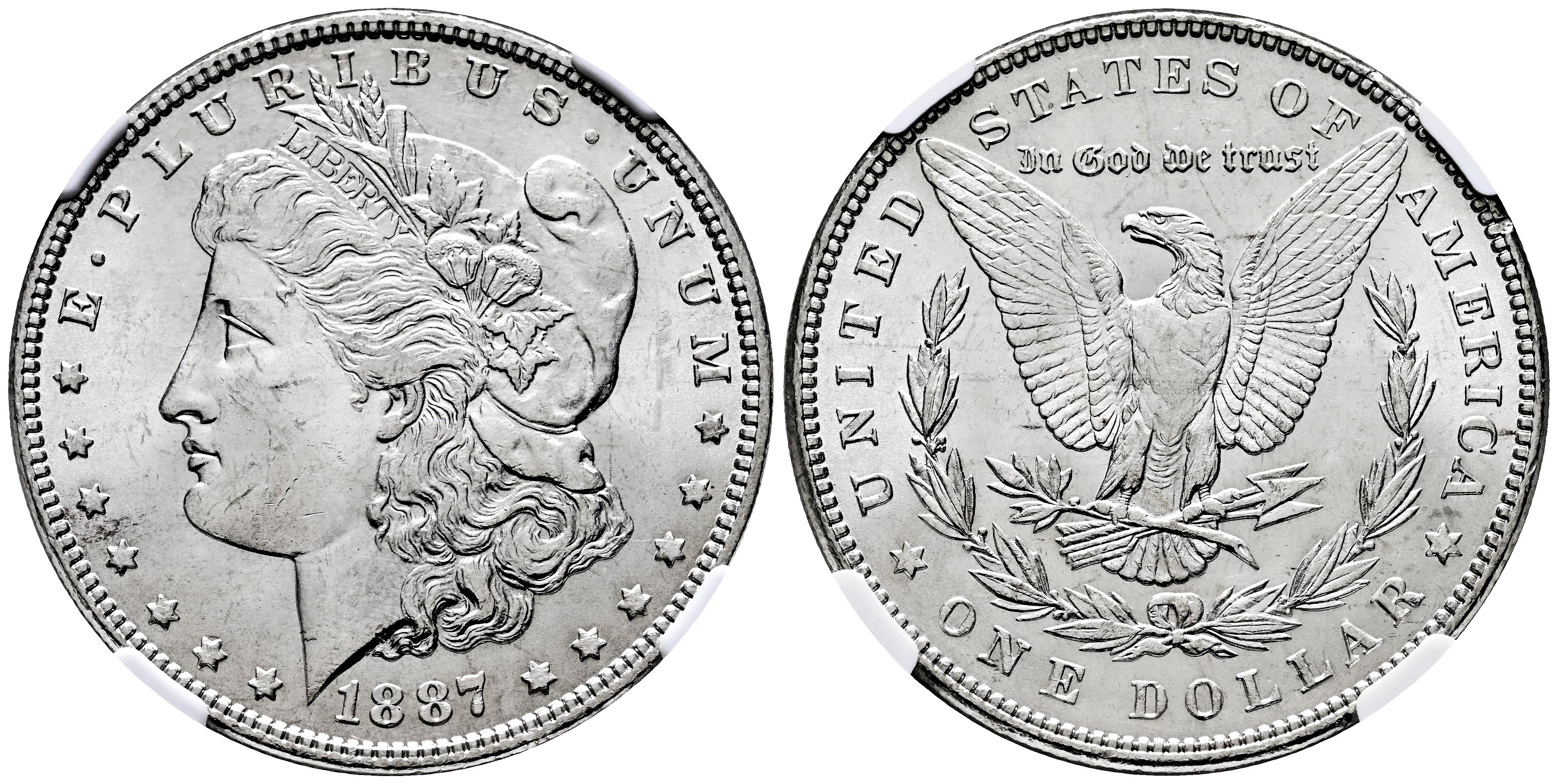 U.S. Coins. Morgan Dollars. 1 dollar. 1887. Philadelphia. (Km-110). Ag. Plenty of original luster. Slabbed by NGC as MS 63. Est...90,00.