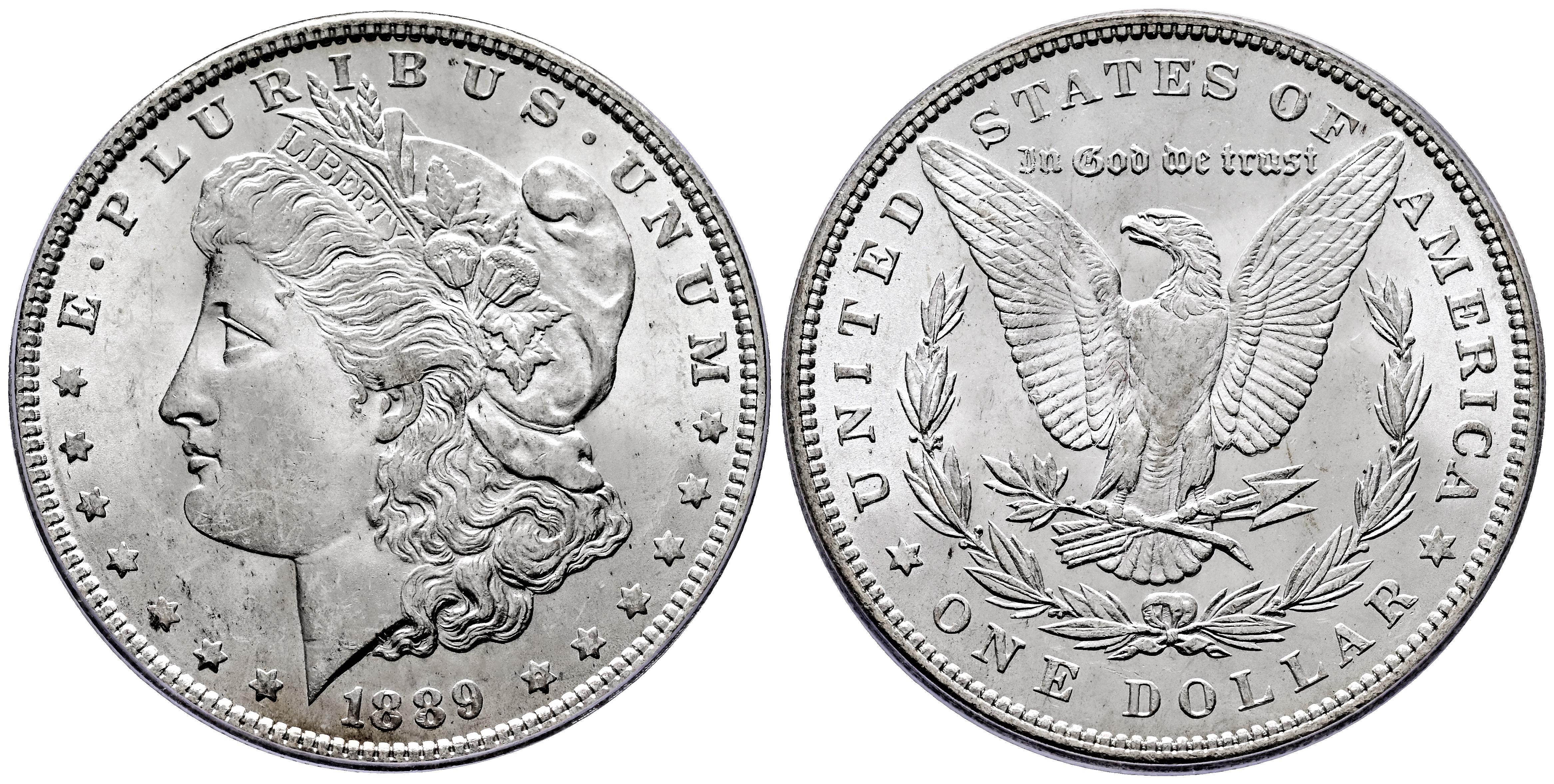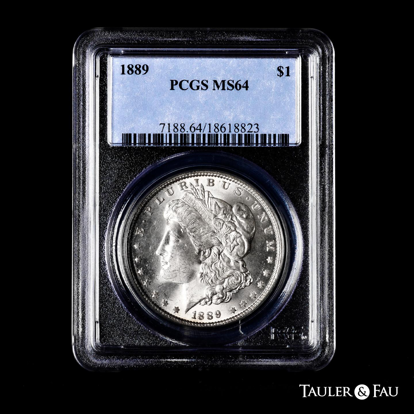 U.S. Coins. Morgan Dollars. 1 dollar. 1889. Philadelphia. (Km-110). Ag. Plenty of original luster. Slabbed by PCGS as MS 64. Est...120,00.