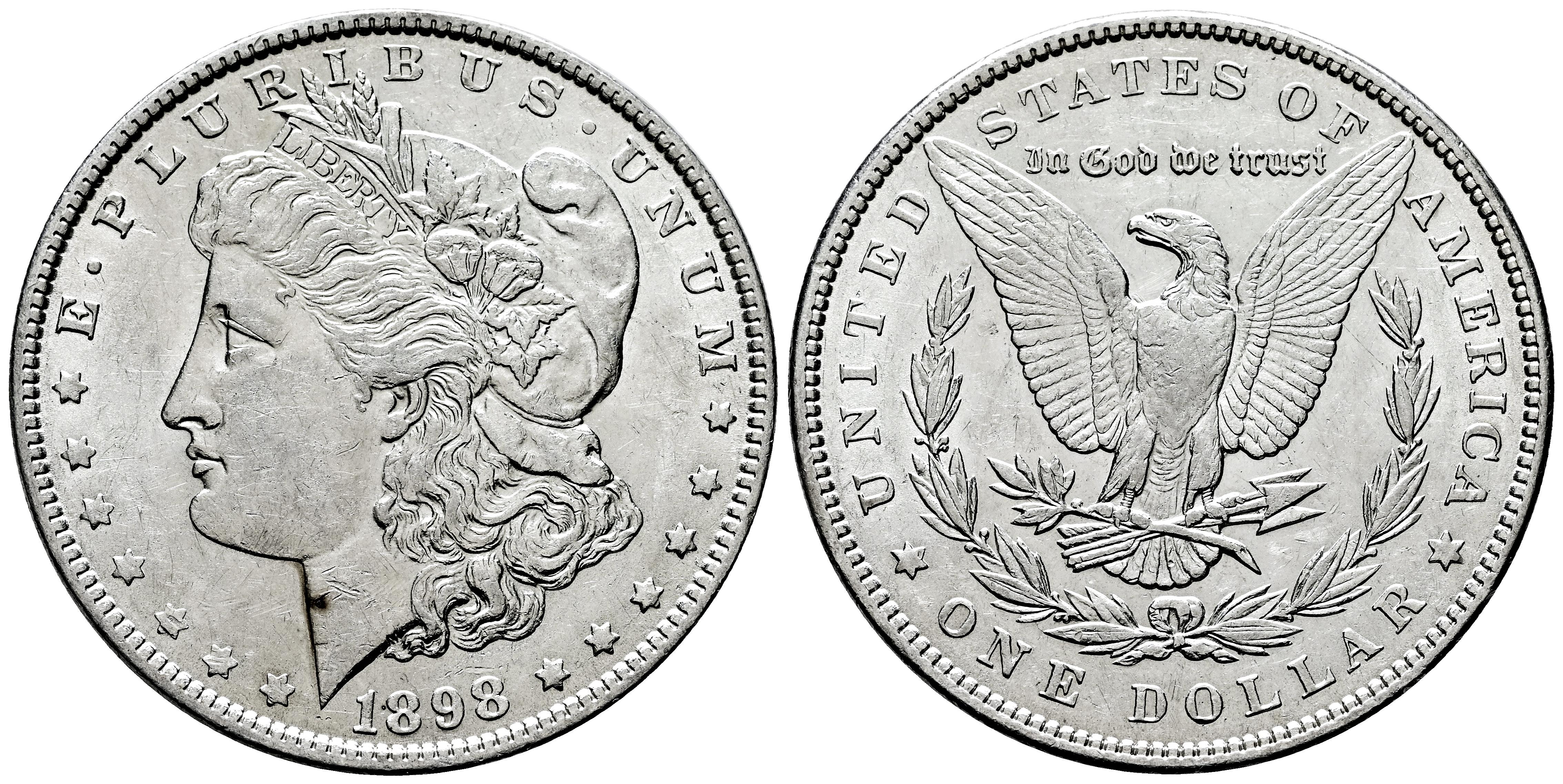 U.S. Coins. Morgan Dollars. 1 dollar. 1898. Philadelphia. (Km-110). Ag. 26,72 g. Hairlines. Traces of luster. Almost XF. Est...45,00.