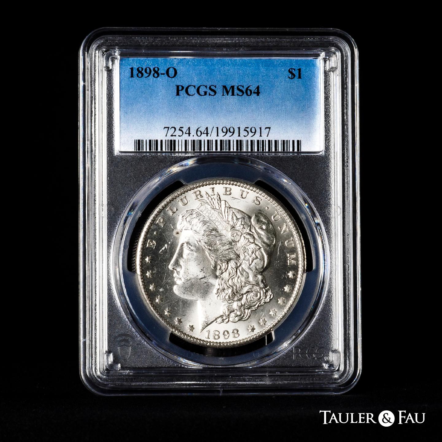 U.S. Coins. Morgan Dollars. 1 dollar. 1898. New Orleans. O. (Km-110). Ag. Plenty of original luster. Slabbed by PCGS as MS 64. Est...120,00.