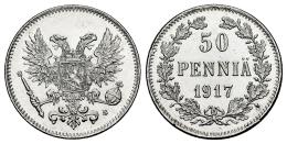 Finland. Nicholas II (1894-1917). 50 pennia. 1917. Helsinki. S. (Km-20). (Bitkin-#GSF1). Ag. 2,57 g. Original luster. Almost MS. Est...30,00.