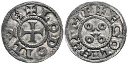 France. In the name of Louis IV. Denier. 1100-1200 AD. County of Angoulême. (Poey-2644). (Duplessy-943). Anv.: + LODOICVS. Rev.: + EGOLIƧƧIME. Ag. 1,38 g. Attractive. Choice VF. Est...70,00.