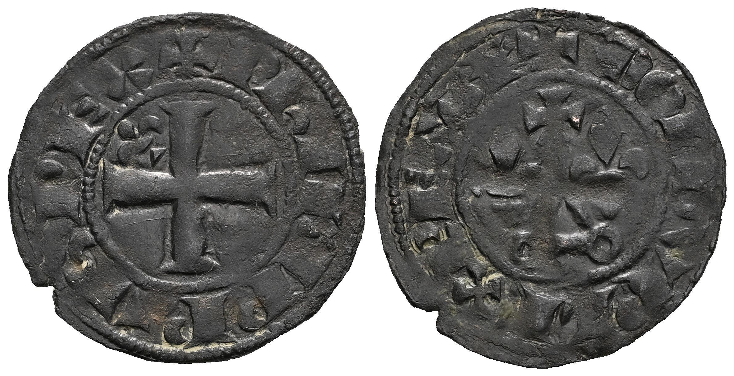 Kingdom of France and Navarre. Philippe IV, le Bel (1285-1314). Double tournois. (Duplessy-229). Anv.: + PHIL*IPPVS REX ˙ , Cross pattée; fleur de lis in first quarter. Rev.: + MON DVPLEX REGAL ˙ , châtel tournois; fleur de lis on each side. Bi. 1,12 g. Choice VF. Est...60,00.