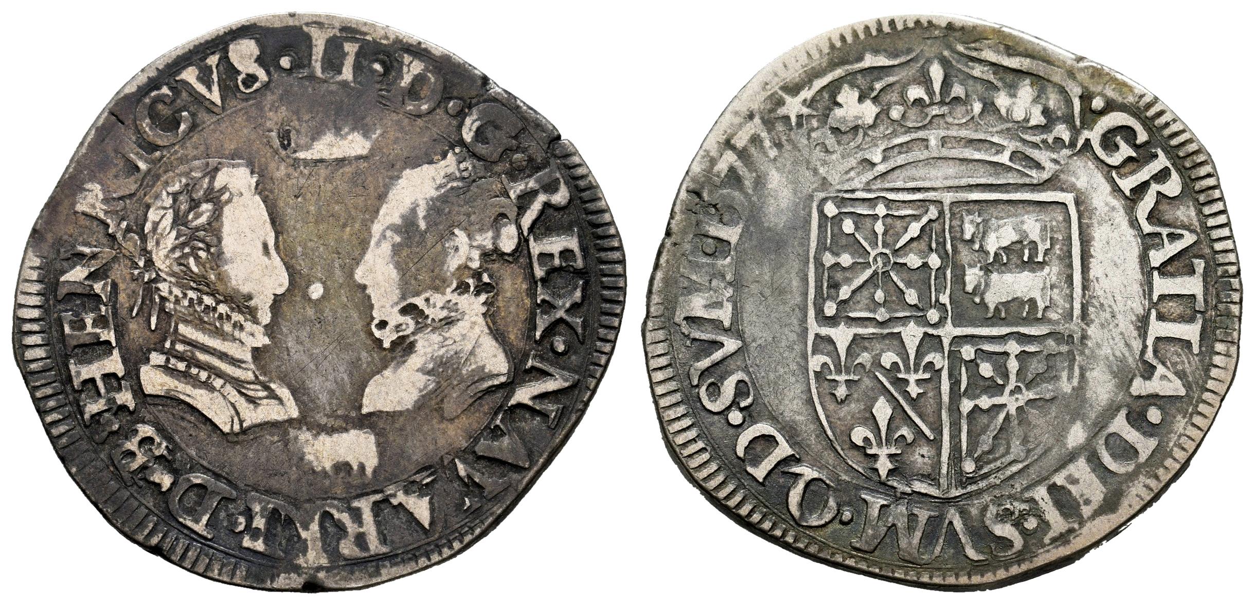 France. Henri III of Navarra, II of Béarn (1572-1589). Teston. 1577. Navarre. (Duplessy-1315). Ag. 9,13 g. Scarce. Almost VF. Est...120,00.