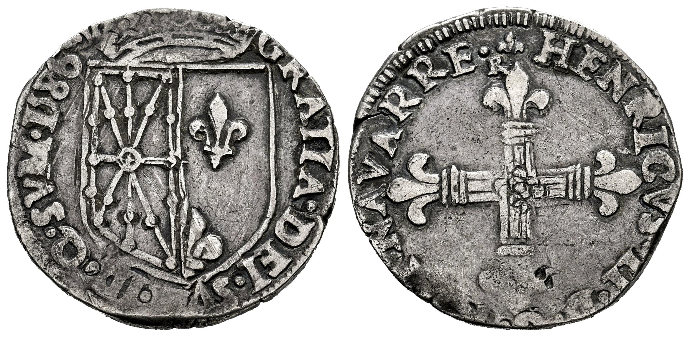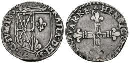 France. Henri III of Navarra, II of Béarn (1572-1589). 1/4 ecu. 1586. Navarre. (Duplessy-1402). (Boudeau-611). Ag. 9,23 g. Patina. Scarce. VF. Est...150,00.
