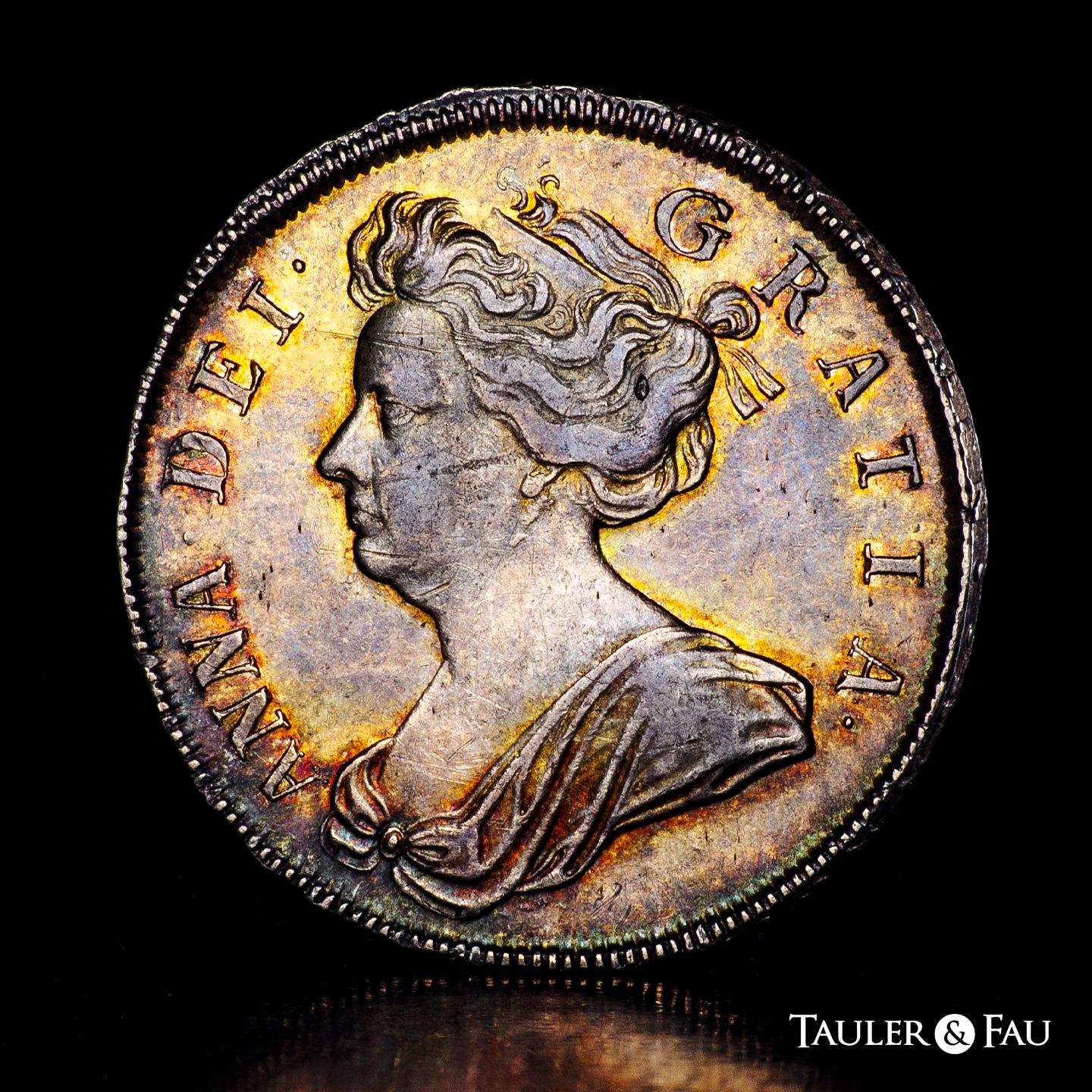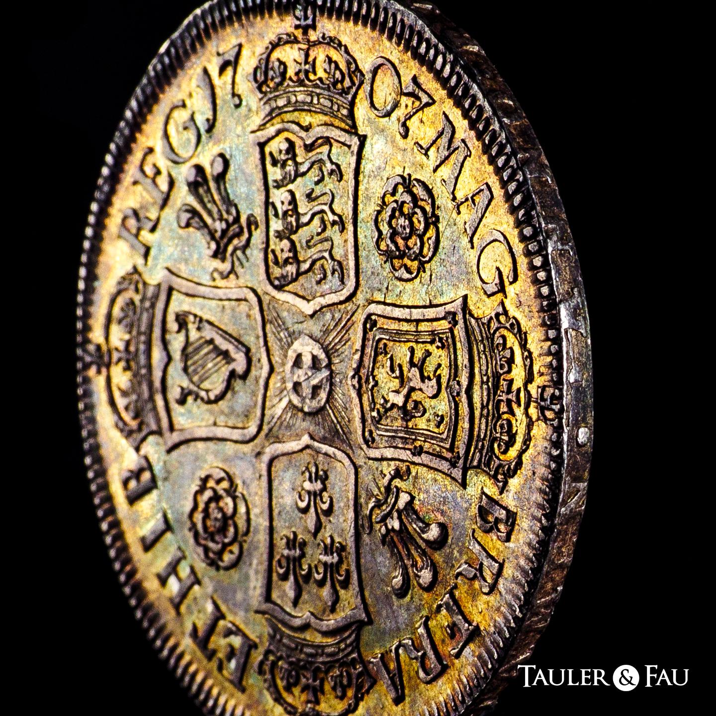 Great Britain. Anna. 1/2 crown. 1707. London. (Km-518.4). (S-3582). Ag. 14,98 g. Legend DECVS ET TVTAMEN ANNO REGNI SEXTO on edge. Lovely iridiscent patina and traces of luster. XF/AU. Est...700,00.