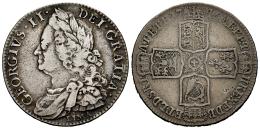 Great Britain. George II. 1/2 crown. 1746. "LIMA" below bust. DECIMO NONO on the edge. (Km-584.3). (S-3695A). Ag. 14,73 g. Struck on Spanish silver seized by Commodore George Anson in Peru during the War of Jenkin's Ear. Anson went on to become a British Naval hero of legendary proportions as a result. Light tone. Rare. VF/Choice VF. Est...180,00.