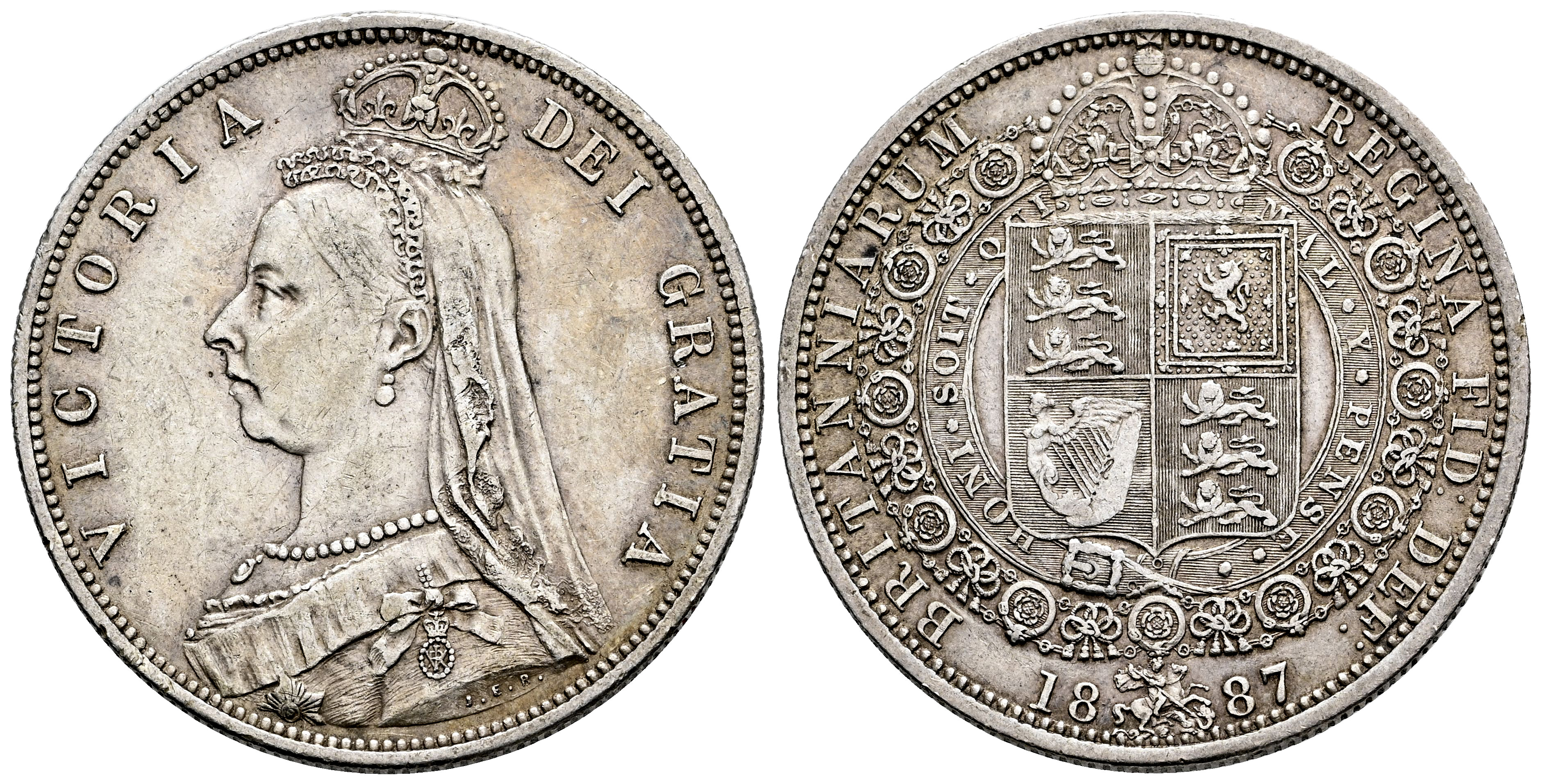 Great Britain. Victoria Queen (1837-1901). 1/2 crown. 1887. Tower Hill (London). (Km-764). Ag. 14,14 g. Ex Tauler&Fau 6 (23/01/2018), lot 441. Choice VF. Est...60,00.