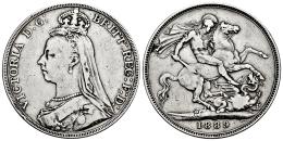 Great Britain. Victoria. 1 crown. 1889. (Km-765). (S-3921). Ag. 28,01 g. Cleaned. Almost VF. Est...60,00.