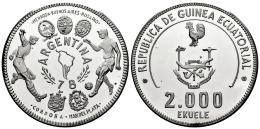 Equatorial Guinea. 2000 ekuele. 1978. (Km-38). Ag. 42,66 g. 1978 FIFA World Cup in Argentina. Mintage 195 pcs. PROOF. Est...200,00.