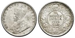 British India. George V. 1/4 rupee. 1918. Calcutta. (Km-518). Ag. 2,93 g. Traces of luster. XF/AU. Est...25,00.
