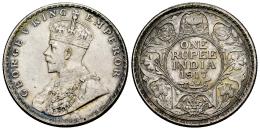 British India. George V. 1 rupee. 1917. Bombay. (Km-524). Ag. 11,69 g. Almost XF. Est...30,00.