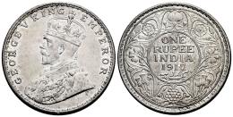 British India. George V. 1 rupee. 1917. Bombay. (Km-524b). Ag. 11,66 g. Ex Tauler&Fau 2 (29/06/2017), lot 1068. Almost XF. Est...40,00.