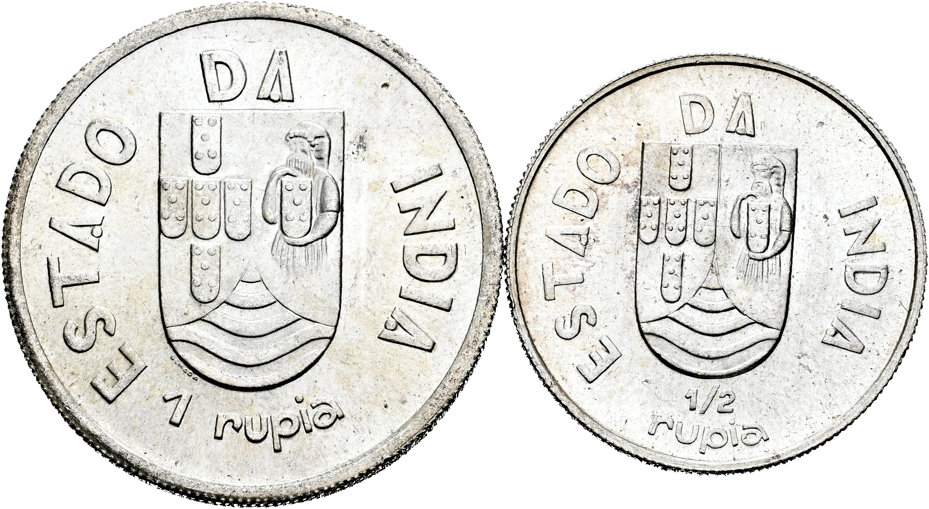 Portuguese India. 1 Rupia y 1/2 Rupia. 1935-1936. Lisboa (Km-22/23). 11,57g-8,86g. Ag. Almost MS. Est...80,00.
