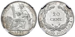 French Indochina. 20 cents. 1937. Paris. (Km-17.2). Ag. Plenty of original luster. Slabbed by NGC as MS 63. NGC-MS. Est...90,00.