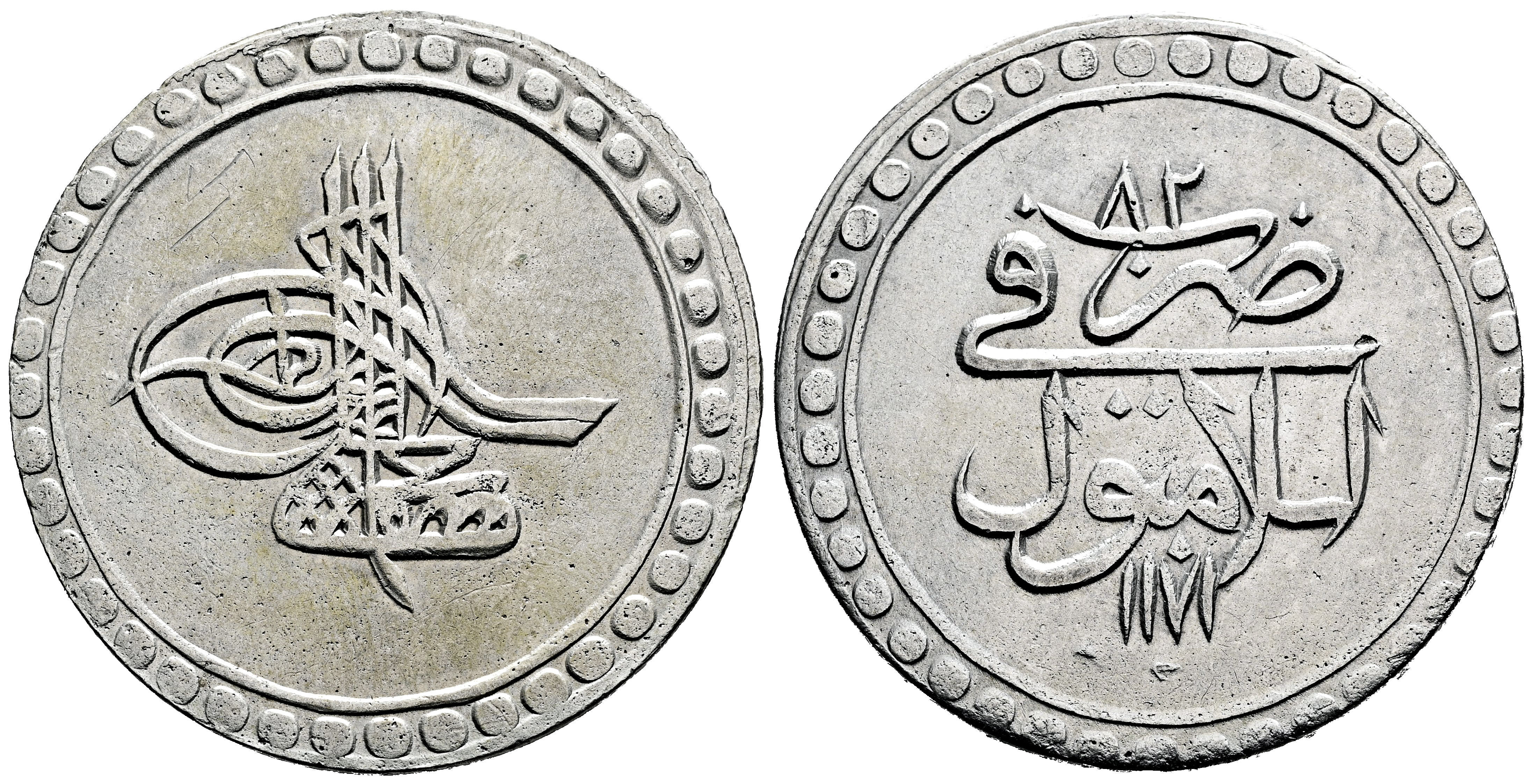 Ottoman Empire. Mustafa III (1757-1774). 40 para. 82 AH (1171). Istambul. (Km-313.2). (Sultan-2206). Ag. 19,45 g. Ex Pars Coin 43 (27/11/2023), lot 217. Included original label. Almost XF. Est...80,00.