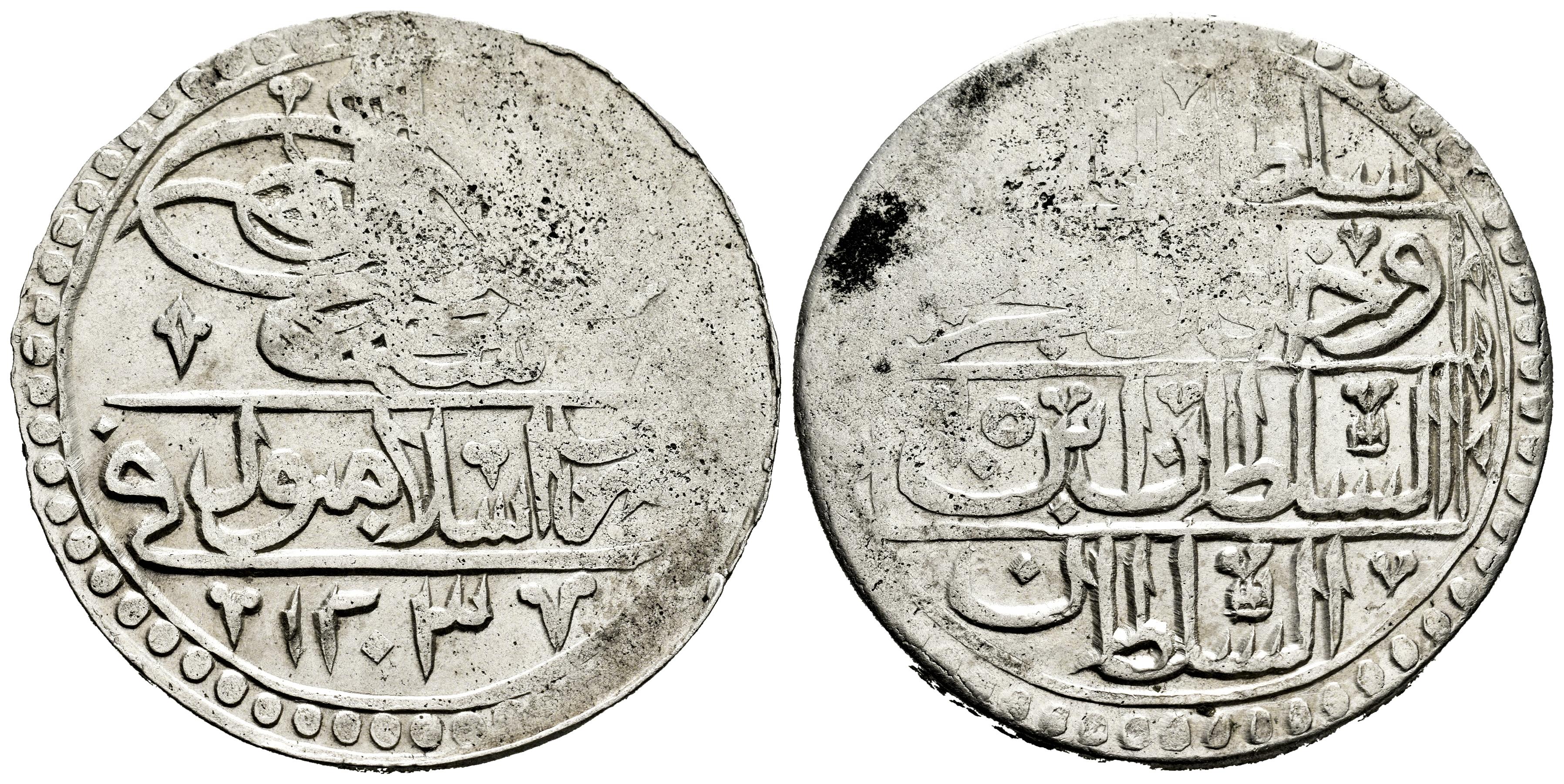 Ottoman Empire. Selim III (1789-1807). 1 yuzluk. 1203/5 (1793). (Km-507). Ag. 31,64 g. Almost XF. Est...90,00.