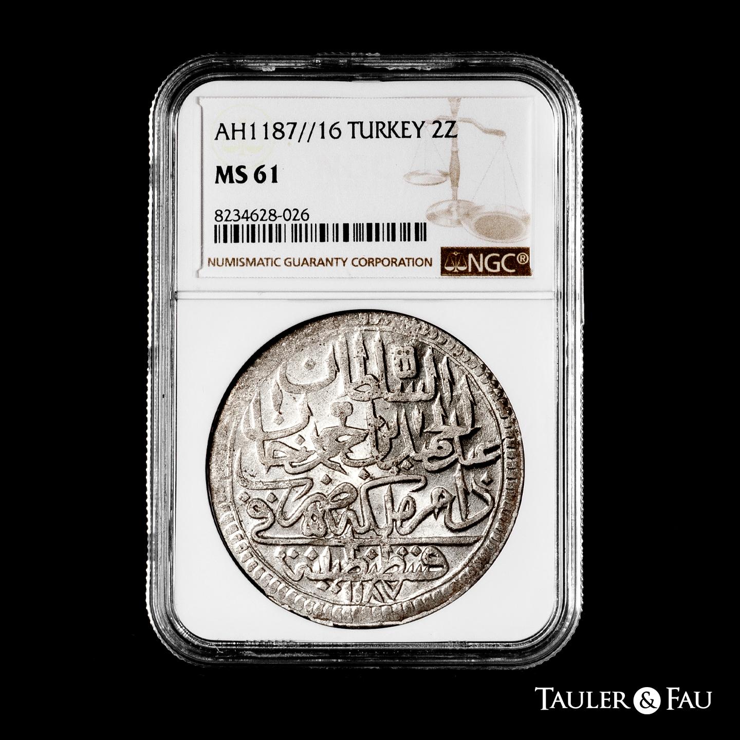 Ottoman Empire. Abdul Hamid I (1774-1789). 2 zolota. 1187/16 H (1789). (Km-403). Ag. Original luster. Slabbed by NGC as MS 61. Est...180,00.