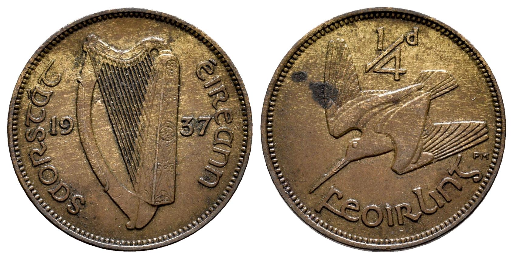 Ireland. 1 farthing. 1937. (Km-1). Ae. 2,81 g. XF. Est...25,00.