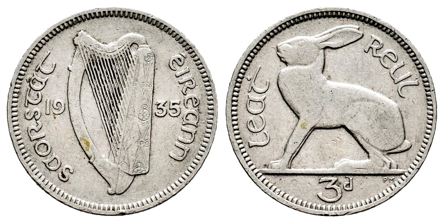 Ireland. 3 pence. 1935. (Km-4). 3,19 g. Choice VF. Est...15,00.