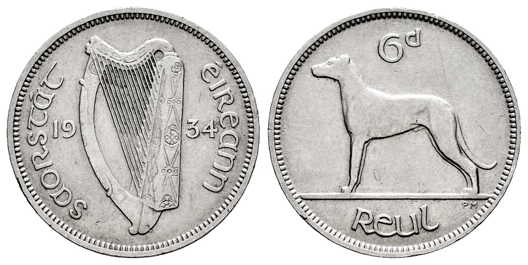 Ireland. 6 pence. 1934. (Km-5). 4,49 g. AU. Est...20,00.