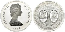 Islas Turcas y Caicos. Elizabeth II. 20 crowns. 1976. (Km-13). Ag. 38,93 g. Bicentennial of the United States of America. PROOF. Est...70,00.
