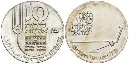 Israel. 10 lirot. 1970. (Km-55). Ag. 26,02 g. Series: Independence Day. 22th Anniversary of Independence. Mint state. Est...40,00.