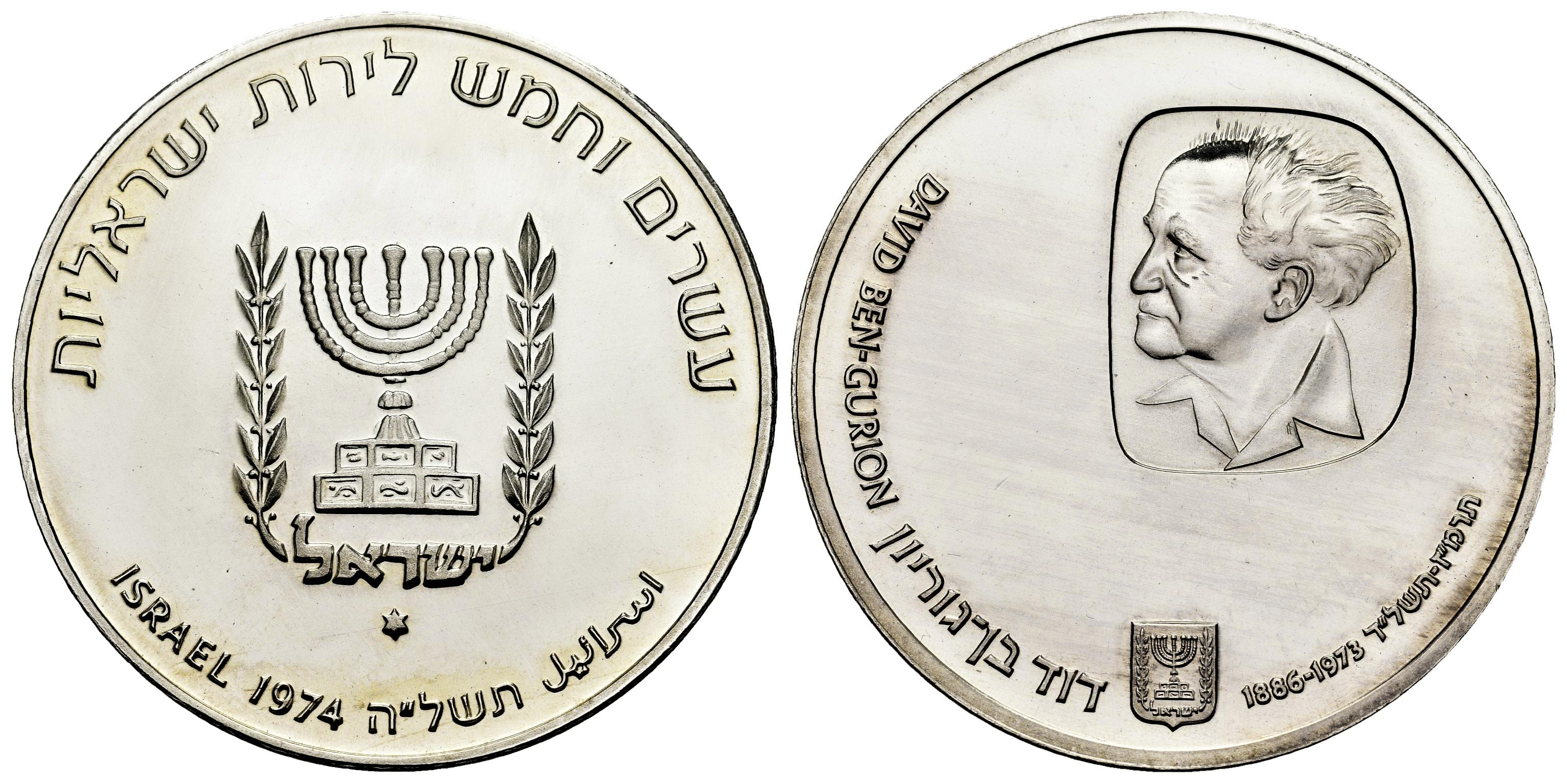 Israel. 10 lirot. 1974. (Km-79.1). Ag. 26,11 g. First anniversary of the death of David Ben Gurion. Flat edge. Mint state. Est...40,00.