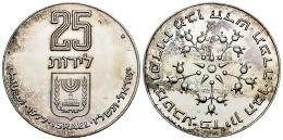 Israel. 25 lirot. 1977. (Km-86.1). Ag. 25,97 g. Flat edge. Hairlines. Mint state. Est...40,00.