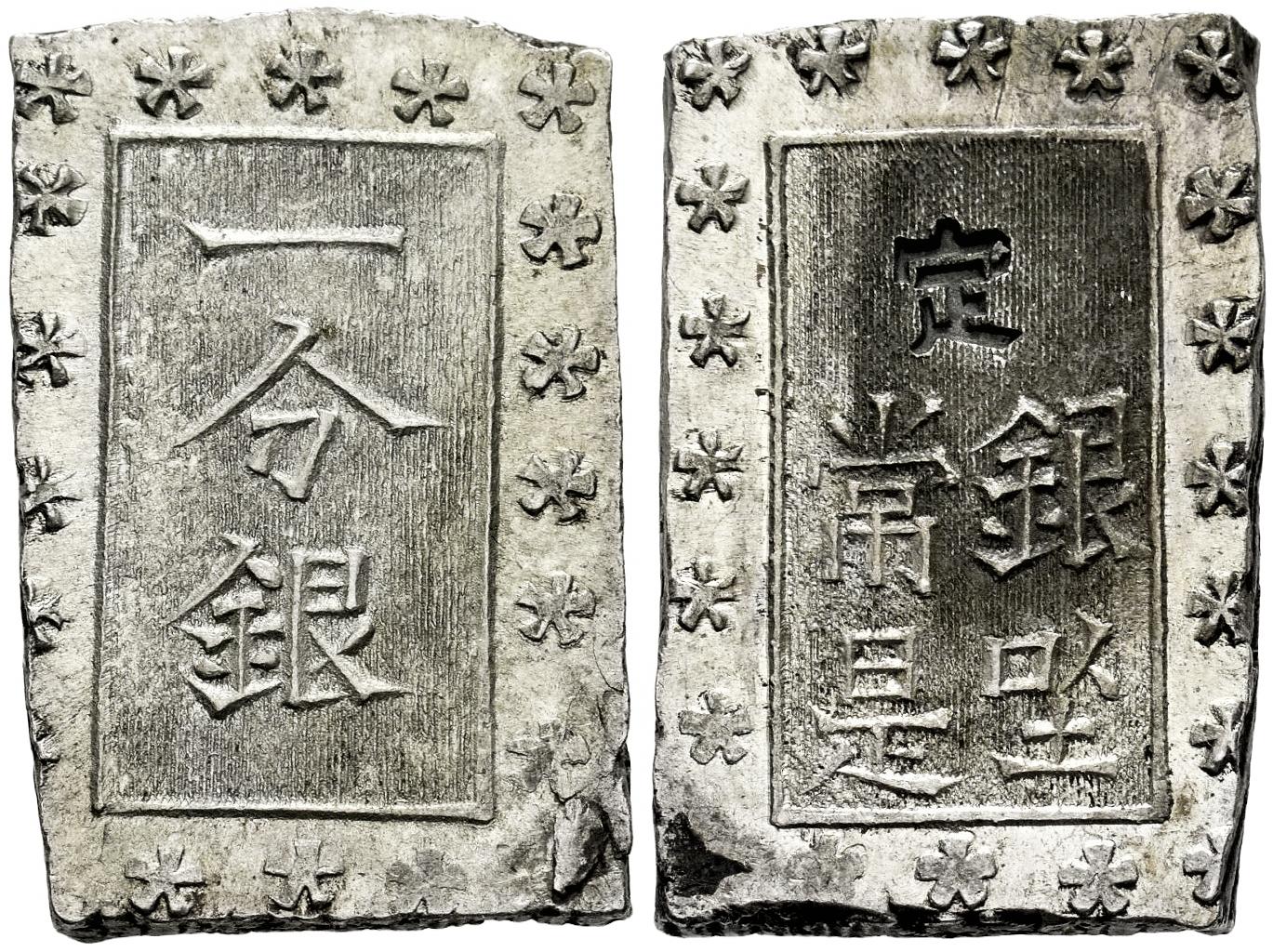Japan. Ansei era (1859-1868). 1 bu (Ichibu). 1837-1854. Position F/g. (Km-C16a). Ag. 8,55 g. Countermarks * on striated edge. Countermarked. Traces of luster. XF. Est...90,00.