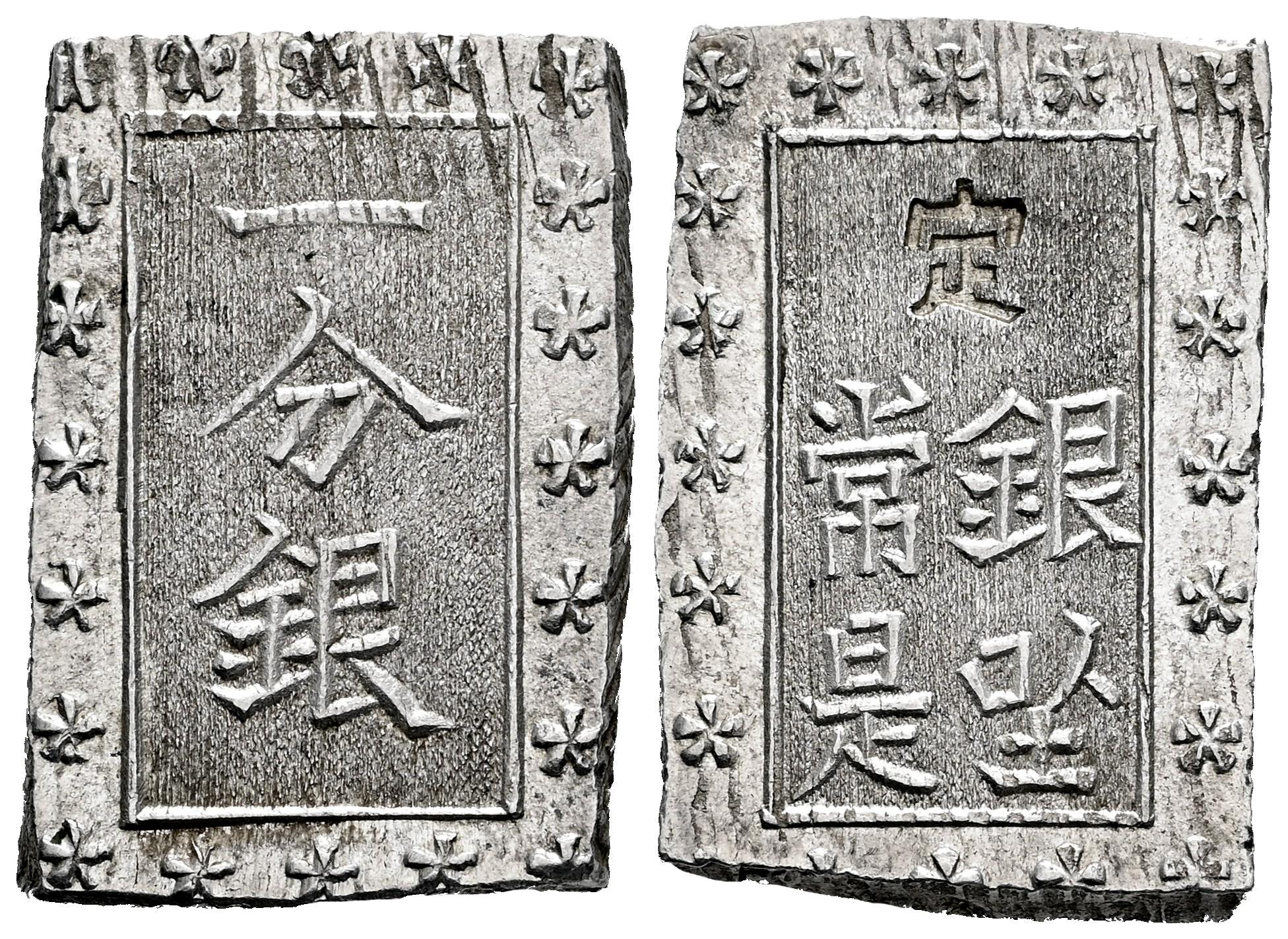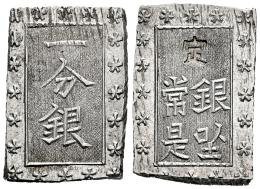 Japan. Ansei era (1859-1868). 1 bu (Ichibu). 1837-1854. (Km-C16a). Ag. 8,80 g. Countermarks * on striated edge. Countermarked. Original luster. XF. Est...90,00.