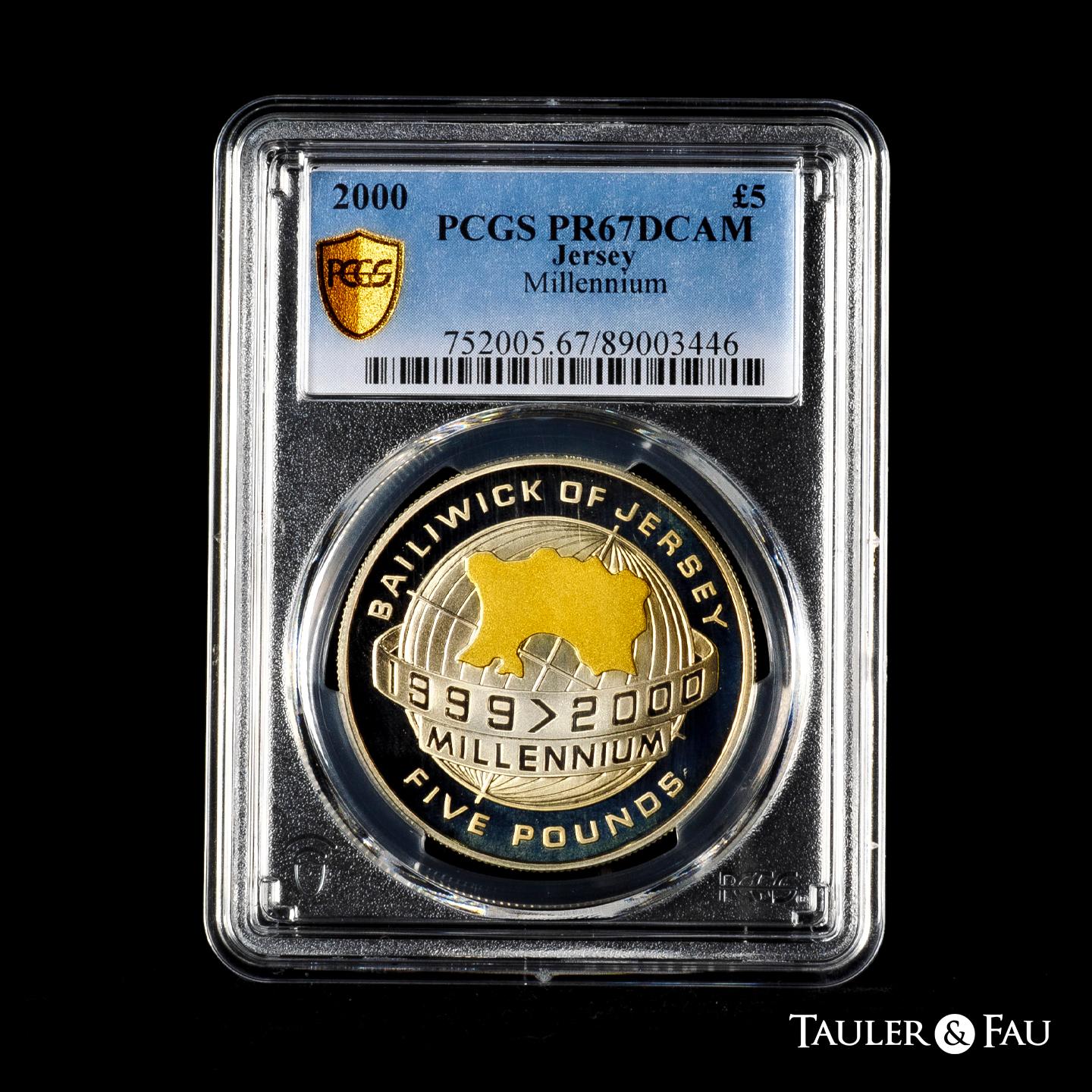 Jersey. Elizabeth II. 5 pounds. 2000. (Km-109). Ag. Slabbed by PCGS as PR67 DCAM. PCGS-PR. Est...60,00.